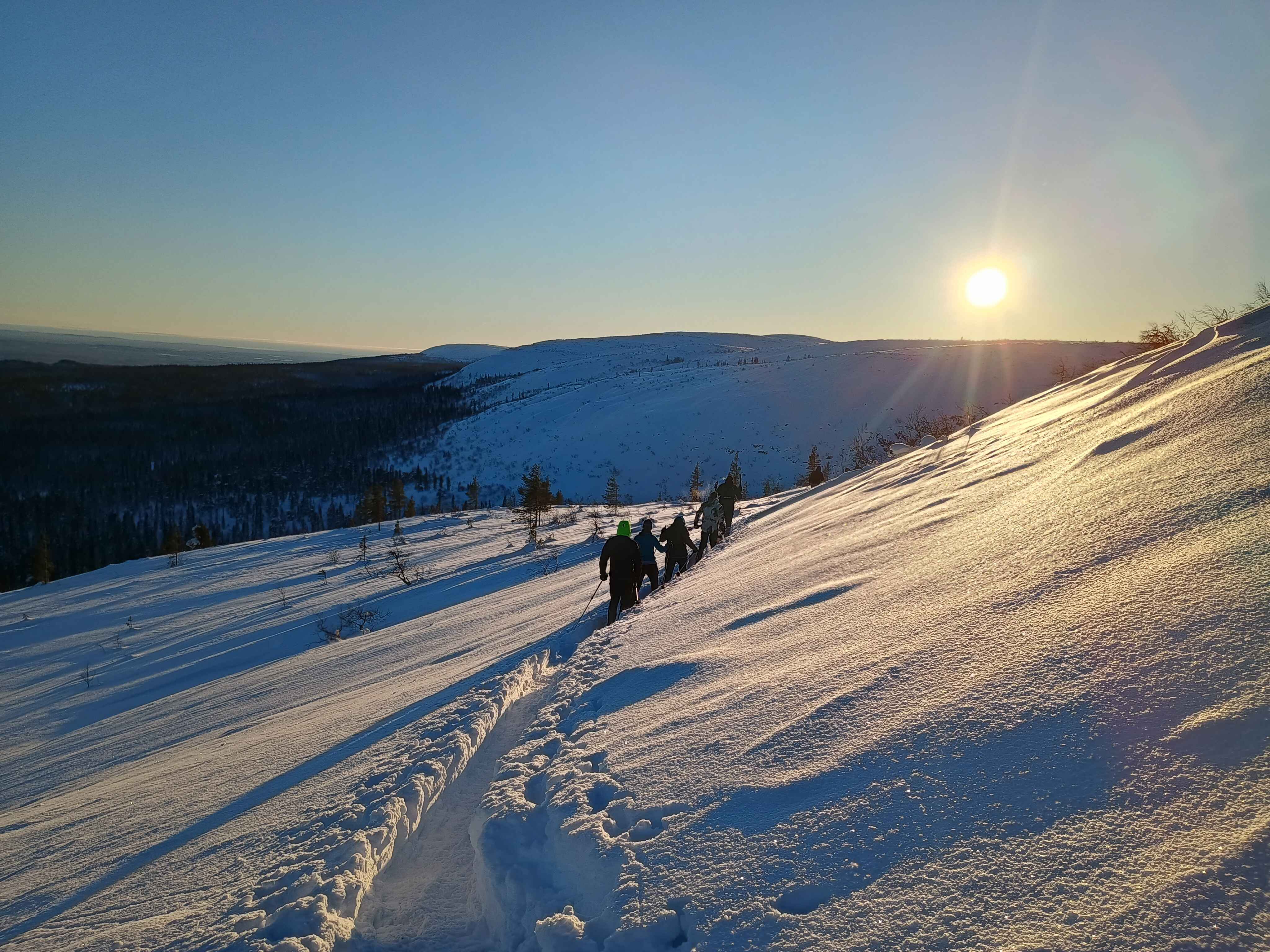 Nach Beendigung der dreitätigen Tour gabe es noch je einen Tag mit Langlaufskiern, Back-Country-Skiern und die Standardtour auf den Hausberg Stätjan mit Schneeschuhen. |