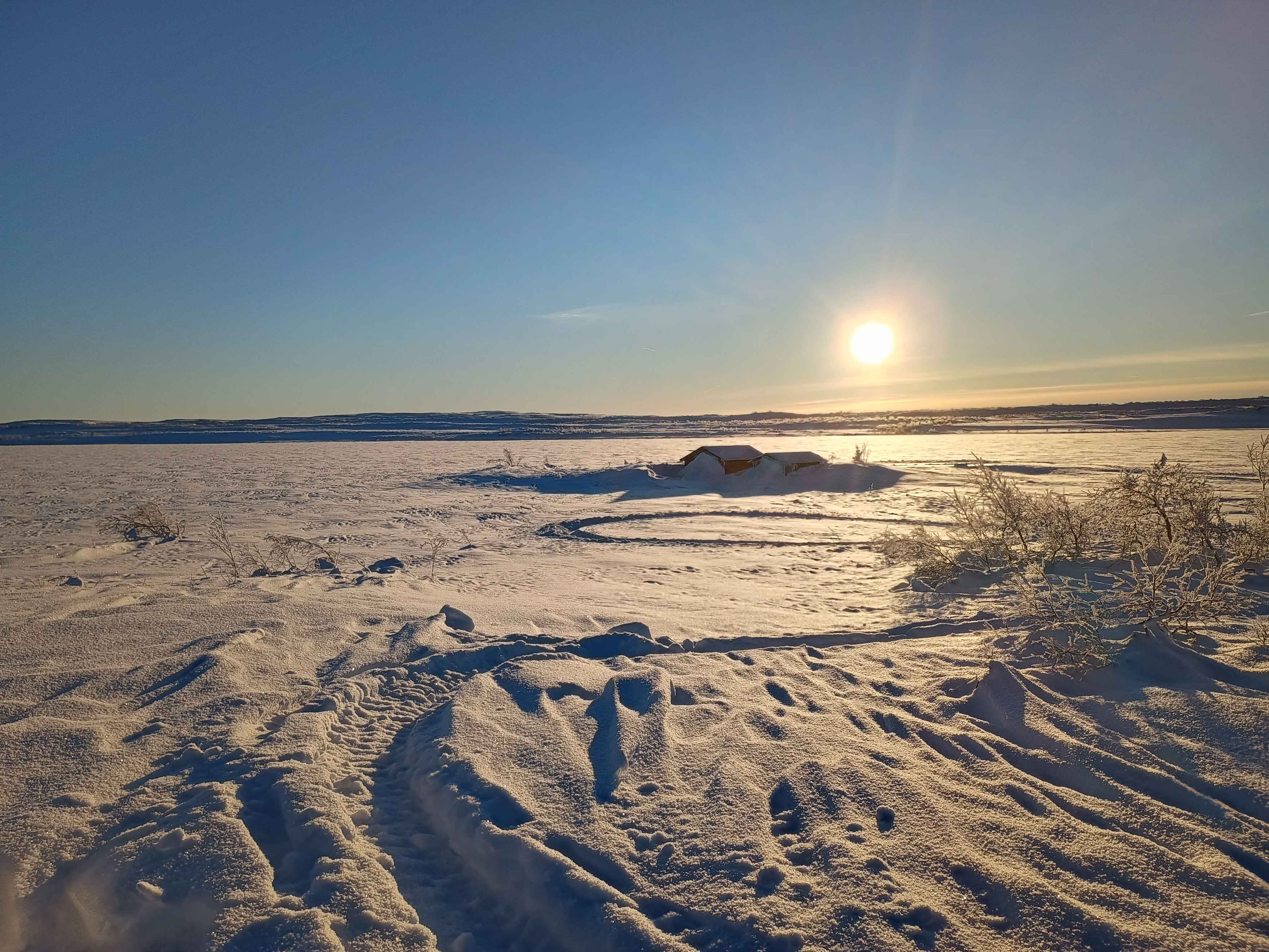 Nach einem Eingewöhnungstag am Sonntag, machten wir uns am Montag bei bestem Wetter zur dreitätigen Hüttentour durch das Fulufjäll auf. Wunderschönes Wetter, allerdings auch - 25°C am frühen Morgen. |