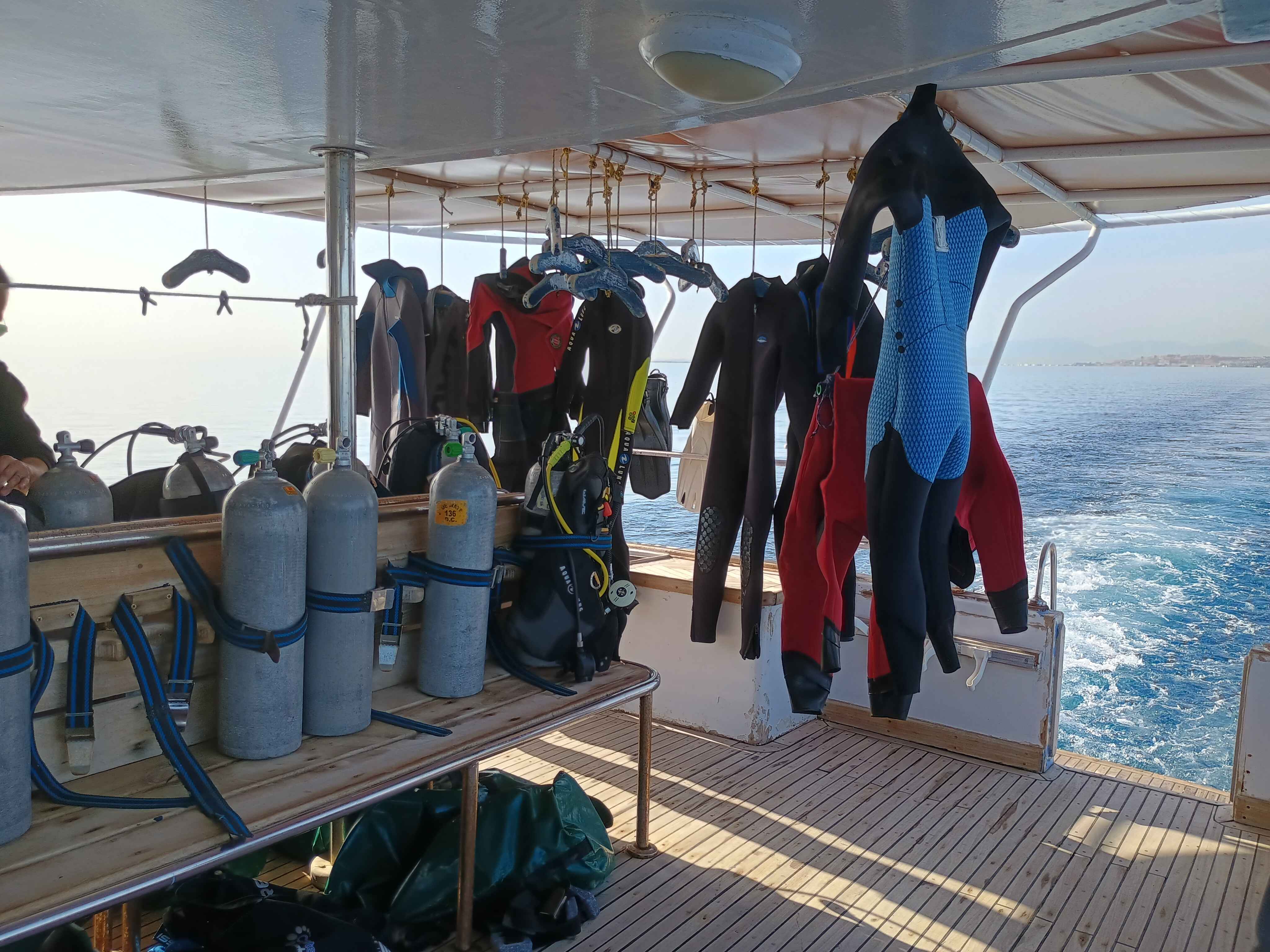 Meistens lag die Tagestemperatur (Luft) zwischen 22 und 26 Grad. Da zu der Zeit wirklich nicht viel auf der Tauchbasis los war, waren wir meistens zwischen 4 und 9 Tauchern je Ausfahrt. |